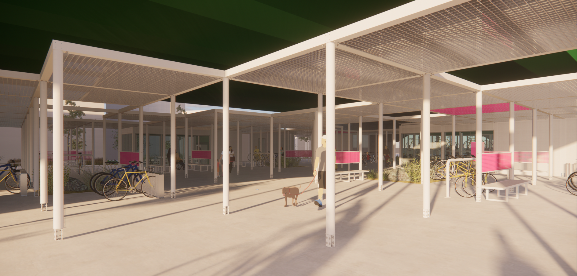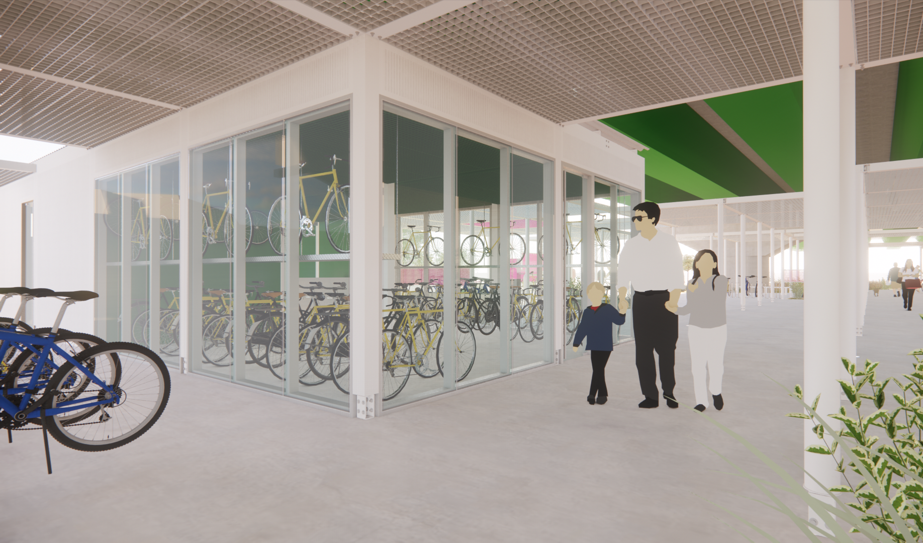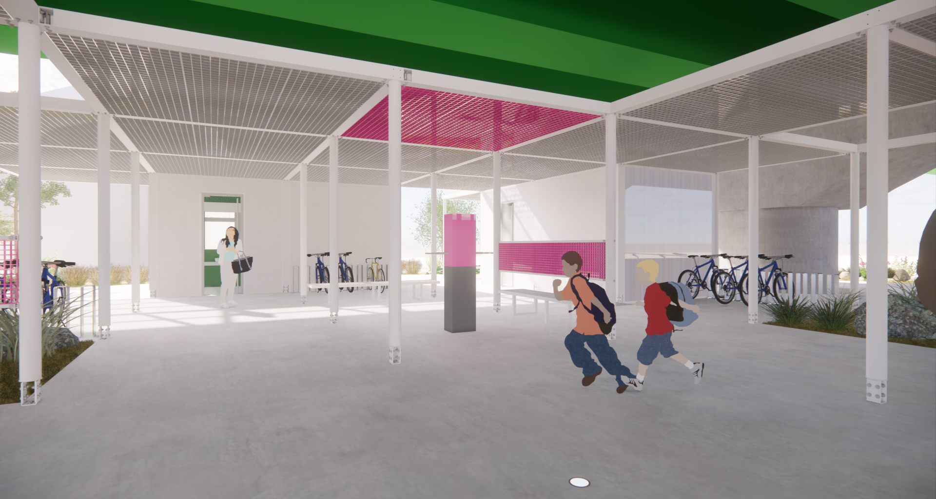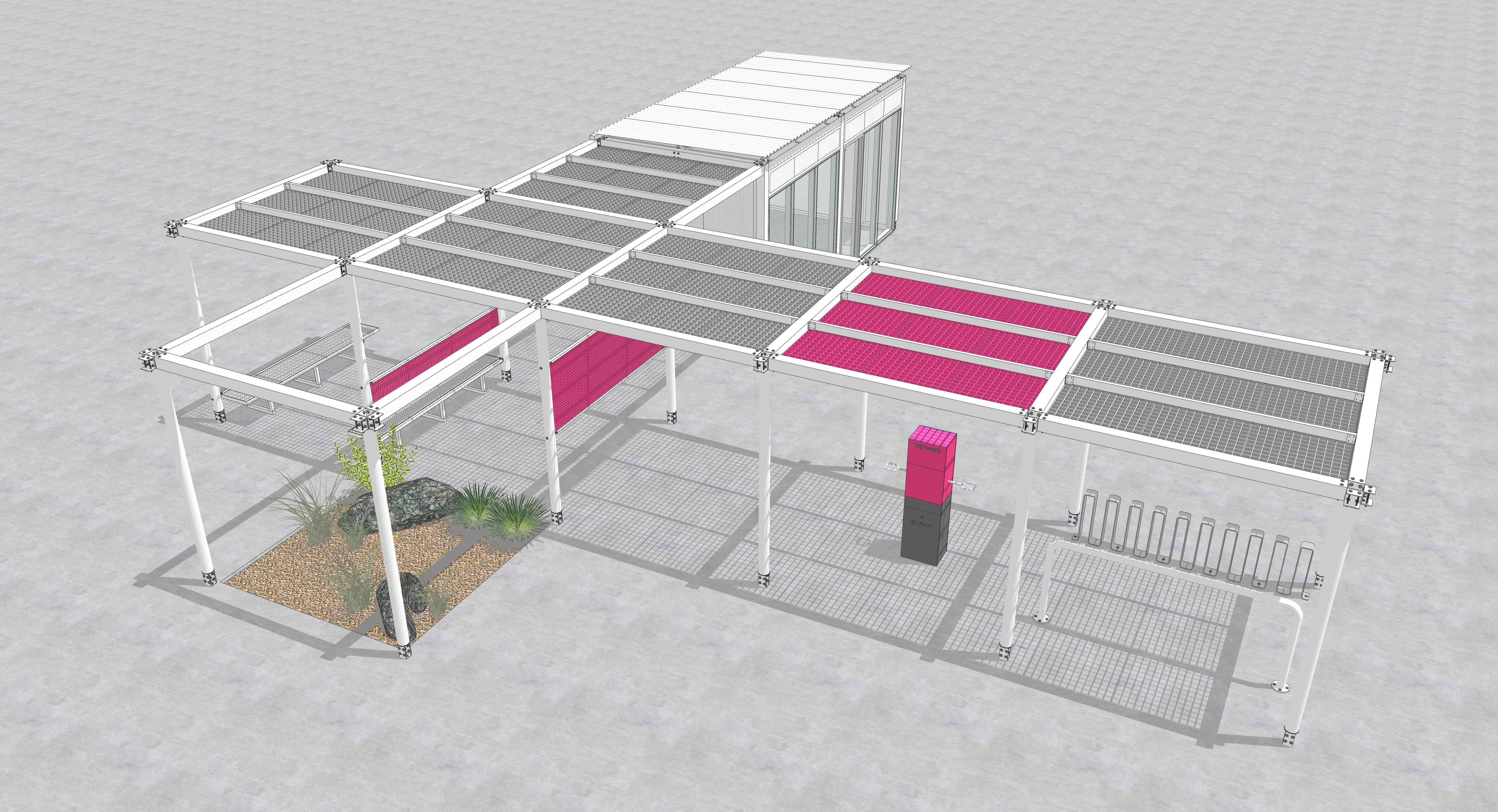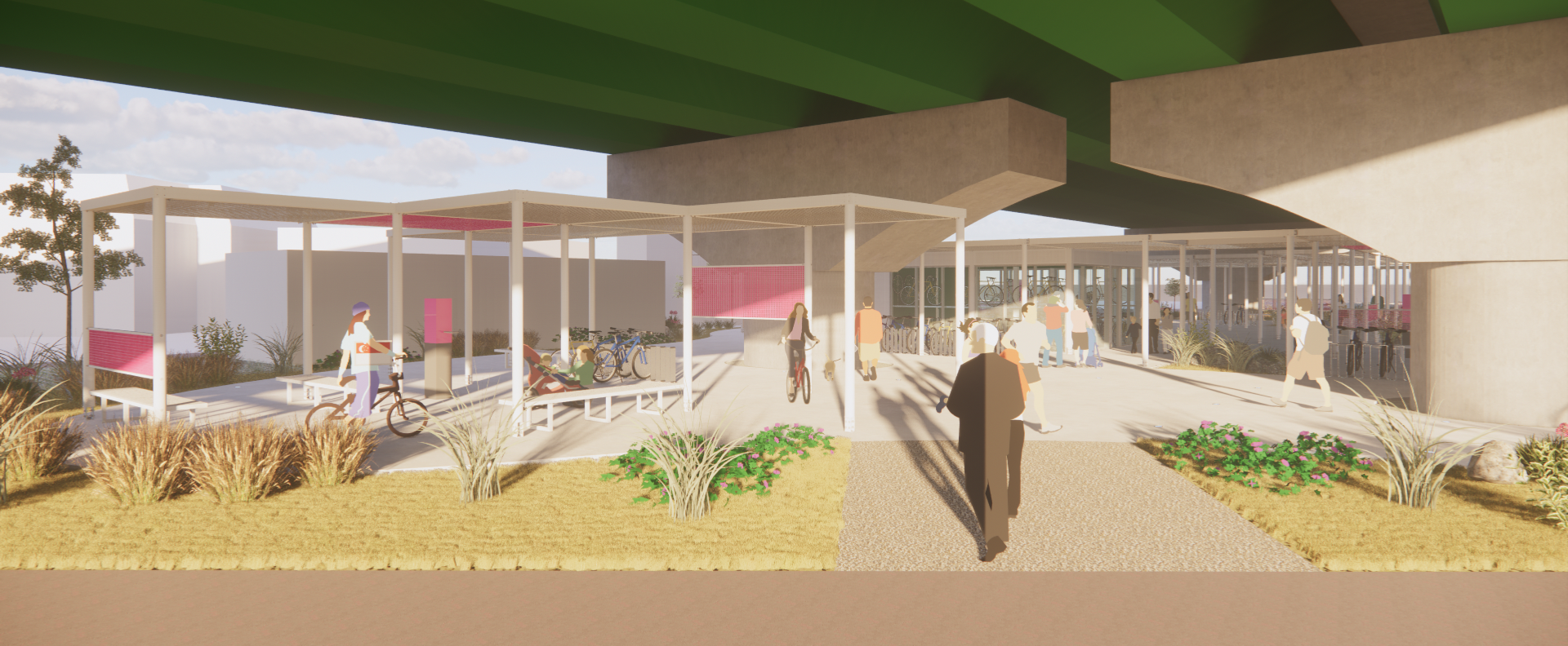 주변과는 다른 공간이라는 이미지, 어두운 고가 하부가 아니라 밝은 공간이라는 이미지가 필요하며, 길 건너 자전거길 이용자들에게도 존재감을 어필하고 이리오라 유혹할 수 있는 이미지로 존재해야 하는 환경의 시설이다.