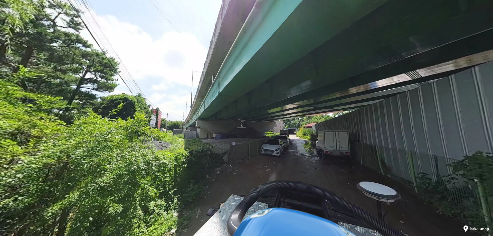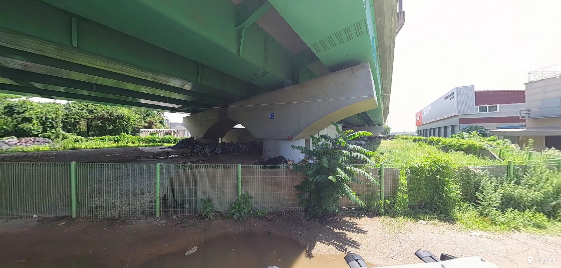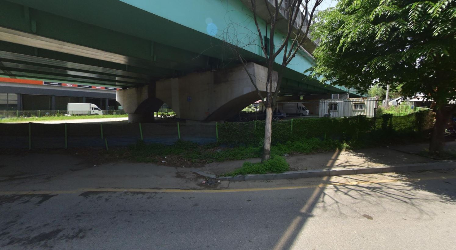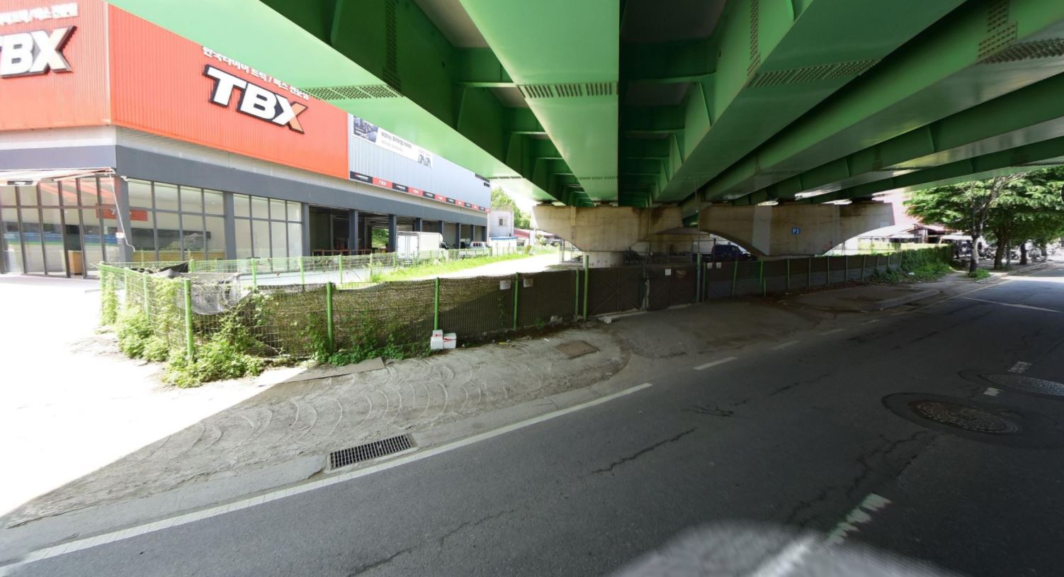 고가도로 하부 공간이 해당 부지이며, 자전거 도로에서 보이는 위치이기는 하지만 그늘진 곳이라 가시성이 몹시 떨어진다. 주변은 정돈되지 않았고, 작은 가게들, 유휴지들, 울퉁불퉁한 도로, 주유소와 타이어 가게 등이 들쭉날쭉 서 있다.