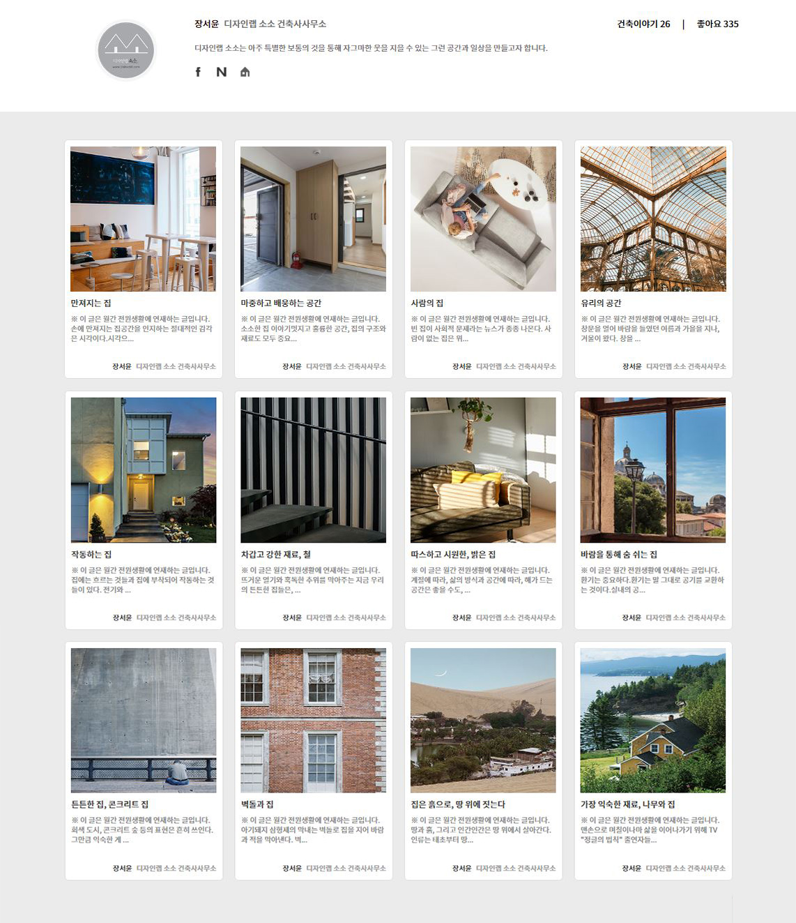 디자인랩소소는 파주 출판도시 내에 위치하고 있으며, 다양한 작은 건축물들을 설계하고 감리합니다. 디자인랩소소는 아주 특별한 보통의 것을 통해 특별한 일상을 선물하는 건축을 만들어갑니다. 세심하고 다정하며, 단단하고 부드러운 당신과 함께하고 싶습니다.