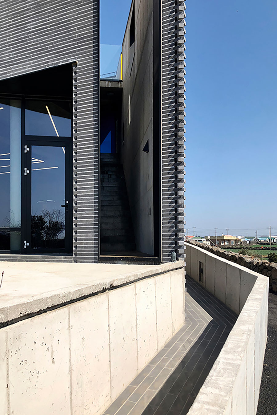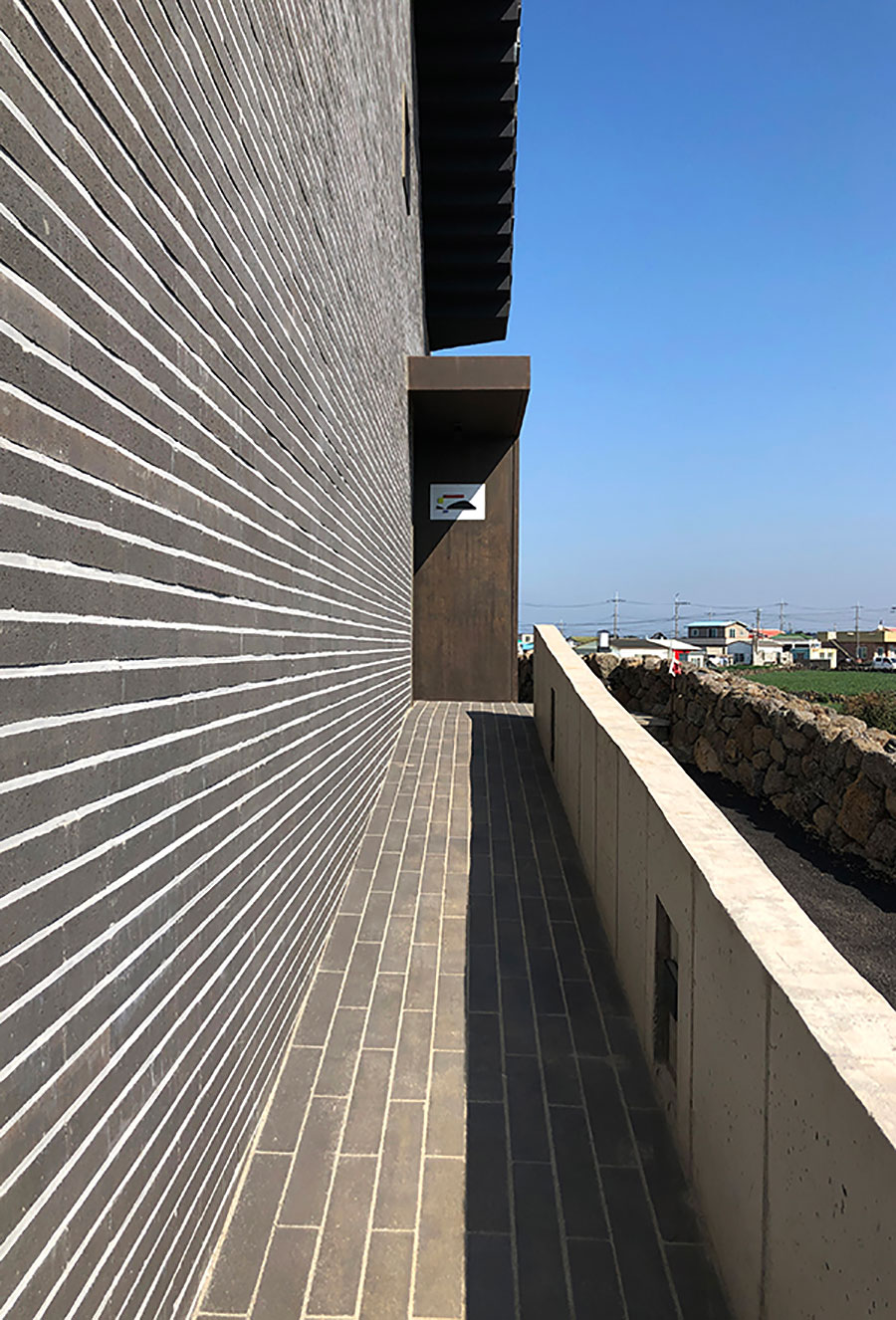 그 후 클라이언트가 선택한 외장재는 빈티지 블랙 색상의 시멘트 벽돌이었다. 제주의 현무암 색상과도 어울리고, 재료 자체의 느낌도 나쁘지 않아 기본 외장재는 이 재료로 선택되었다.