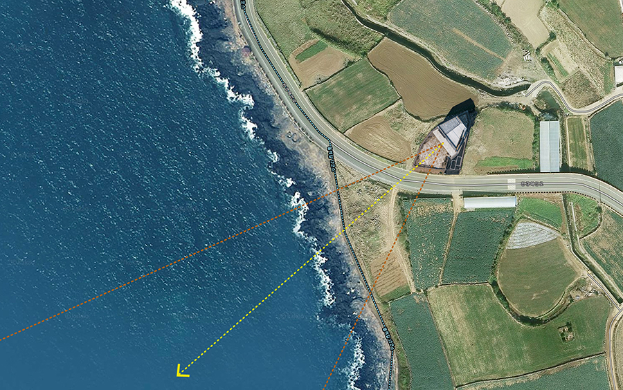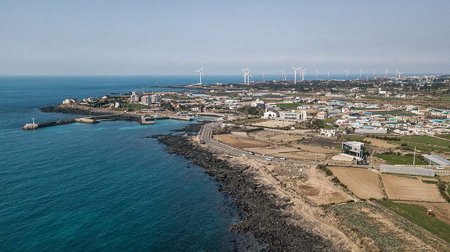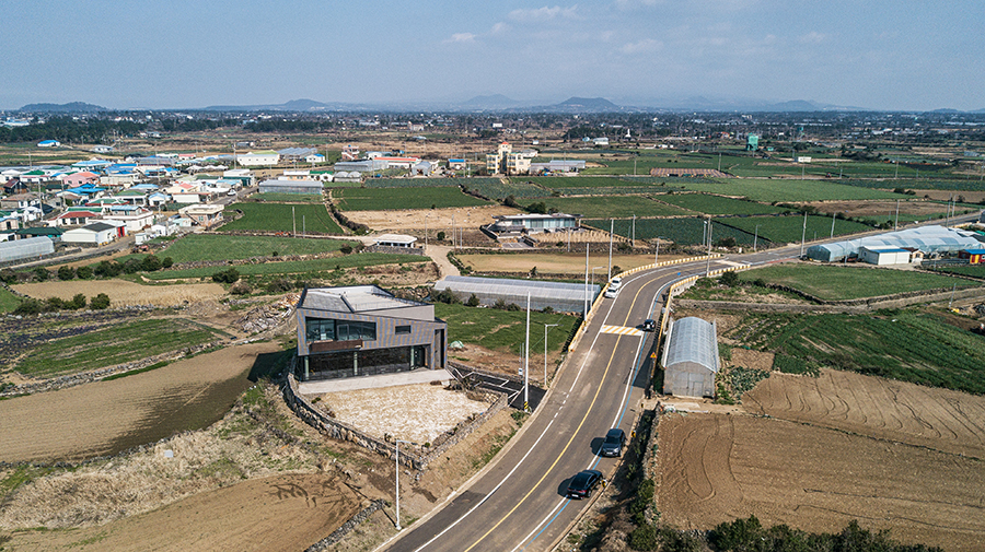 대지는 제주의 서쪽 끝, 차귀도를 바라보는 곳에 있다. 제주에서는 드물게 카페도 식당도 거의 없는 한가한 해안도로다. 푸른 바다와 차귀도가 보이고, 멀리 신창해안도로에는 풍차가 돌아가며, 가까이는 성김대건신부 표착기념관도 있다.