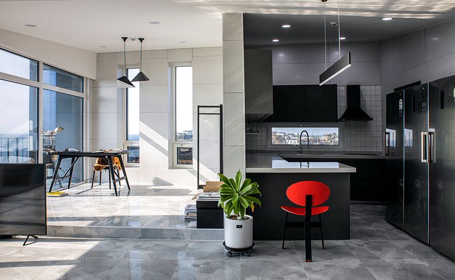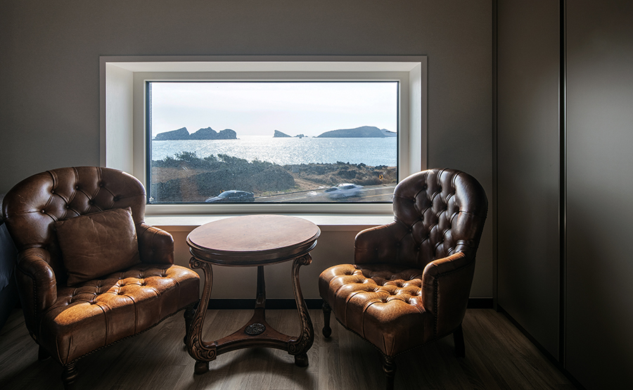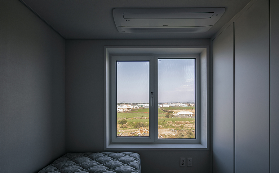 2층은 클라이언트의 주택이다. 프라이버시보다도, 그 무엇보다도 차귀도로의 조망과 열린 느낌을 중요하게 생각한 클라이언트의 요구에 따라 설계했다. 내장재 역시 클라이언트의 취향에 따라 과하거나 너무 튀지 않는 선에서 결정되었다.