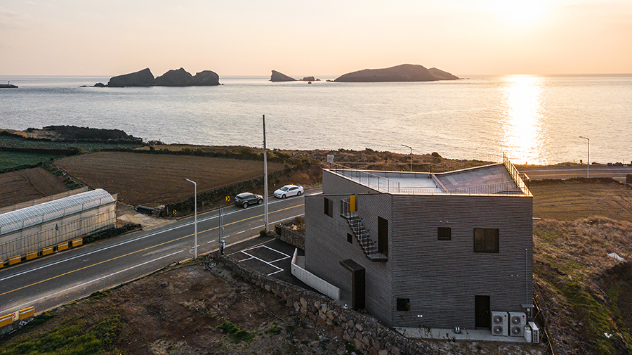 차귀도를 잘 바라보는 것이 그 무엇보다 중요했다. 그래서 건물의 방향을 차귀도로 두고, 차귀도 방향으로 열린 사다리꼴의 건축물을 두기로 했다. 모든 실내 공간에서는 차귀도를 바라볼 수 있고, 매일 다른 일몰을 즐길 수 있다. 그러면서도 다양한 크기와 비율, 프레임의 창들을 두어 공간마다 다른 느낌으로 차귀도를 바라볼 수 있도록 했다.