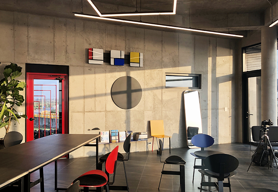 사무실로 찾아온 클라이언트의 손은 무거웠다. 엄청나게 많은 자료와 생각들, 아이디어들과 함께였다. 은퇴 후의 새로운 생활을 제주에서 좋아하는 커피와 음악이 가득한 공간에서 보내기로 했다 하였고, 몬드리안으로 대표되는 데 스틸(De Stijl)을 본인이 지을 카페와 집의 컨셉으로 하기를 원하다며 다양한 이미지들을 보여주었다.