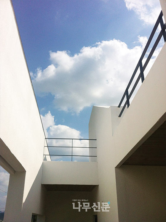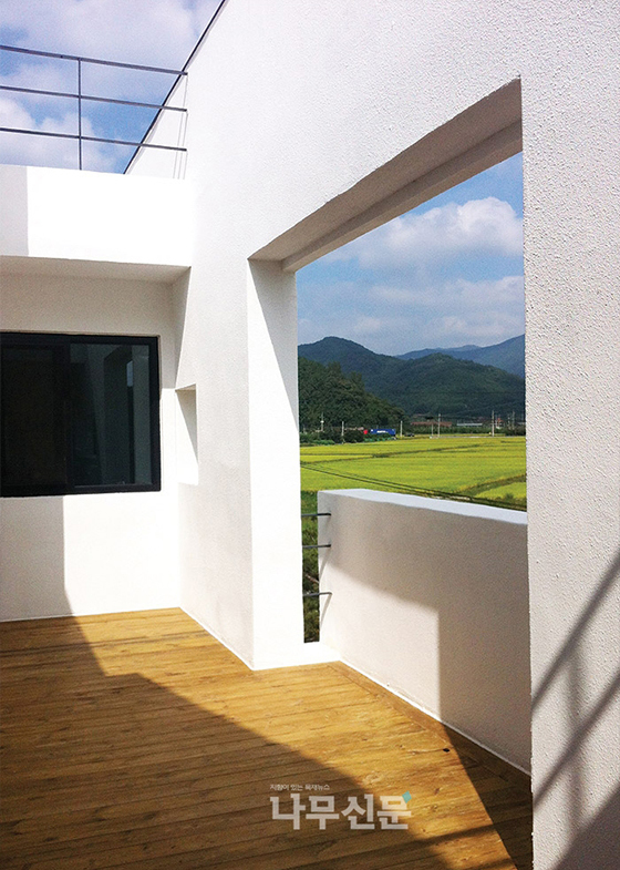 해당 부지는 뒤쪽으로는 산이 둘러싸고, 앞으로는 벌판이 있어 시각적 장애물 없이 널리 트인 길쭉한 형태를 띠고 있었다. 무엇보다 북동향 면에 접한 시원하고 넓은 아름다운 풍광은 절대 포기할 수 없는 요소였다고. 하지만 건물을 그냥 앉힐 경우에는 북향이 될 수 있어 긴 박스 형태의 외관으로 꾸몄다. 이에 동서 남향에는 햇빛을, 북동향에서는 풍광을 받아들일 수 있는 여건이 완성됐다.