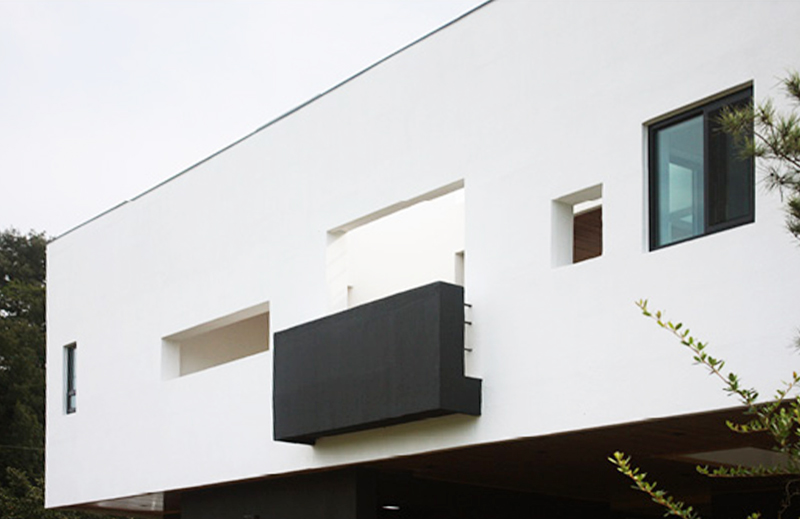 “보안과 사생활 보호에 민감한 건축주의 생각과 드넓게 펼쳐진 주위 환경과의 만남을 조합해 절제된 입면을 만들었습니다. 프레임들이 밖에서는 외부의 시선을 필터링해 사생활로의 시선을 대부분 차단하고, 내부에서는 마치 한옥에서의 창들이 차경 역할을 하듯 각각의 장소에서 저마다 다른 모양의 풍경 액자를 만들어내는 것이죠.”