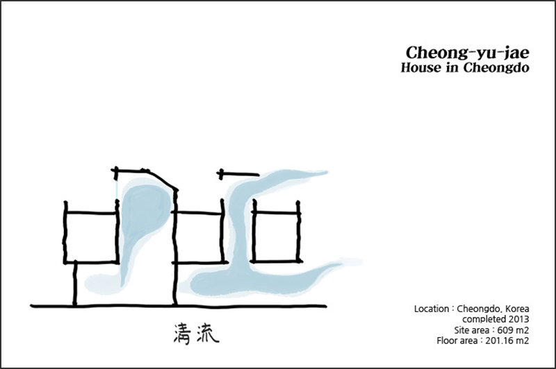 십수 개의 설계안 끝에 나온 청유재는 필로티를 둬 차고를 대신하고, 실외와 필로티 데크에서부터 옥상까지 관통하는 보이드(Void) 공간을 통해 더욱 넓어 보이도록 유도했다. 이는 낮에는 햇빛으로, 밤에는 조명으로 빛기둥 역할을 한다. 건물 구석구석에 위치한 외부 장소들을 연결함으로써 소통하고 주택명 그대로 맑음이 흐르도록 고려한 것이다.