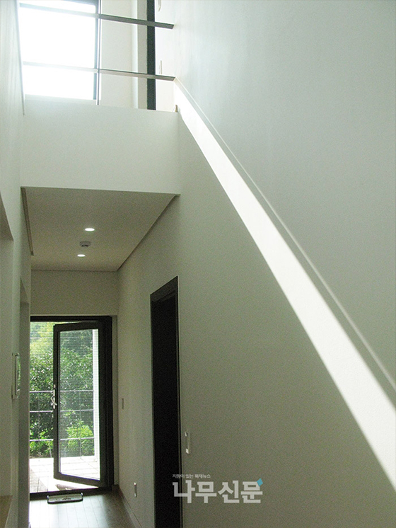 이곳에서는 건축주 부부와 딸이 함께 거주하기에 3명의 의견을 설계에 적절히 반영했다. 넉넉하지 않은 예산 안에서 가족의 여분 짐을 둘 곳이 필요했으며, 자동차도 늘 2대를 주차할 수 있어야 했고, 지붕 있는 차고를 원하는 건축주를 위해 장 소장은 최대한 설계비를 아끼면서도 효율적인 장소로 만들 수 있도록 심혈을 기울였다.
