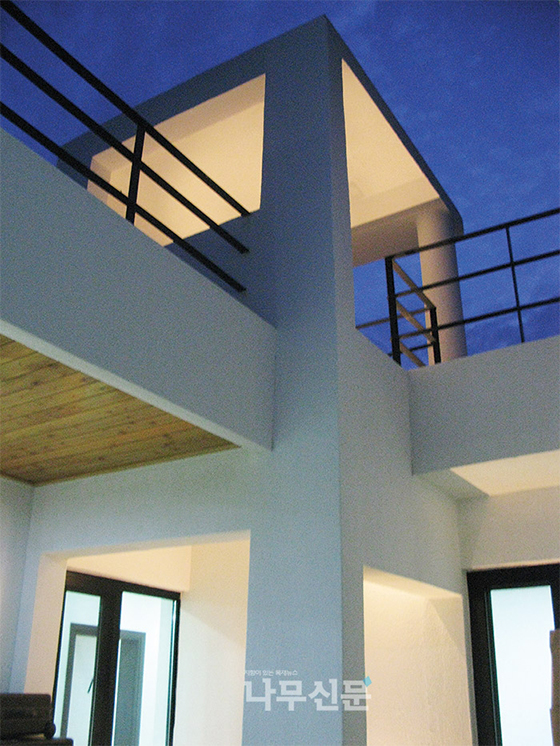 아울러 내부 1층은 주방/식당, 거실, 창고 등 최소의 공용공간으로 만들고 2층은 안방, 침실, 테라스 등 개인 공간으로 배치했다.