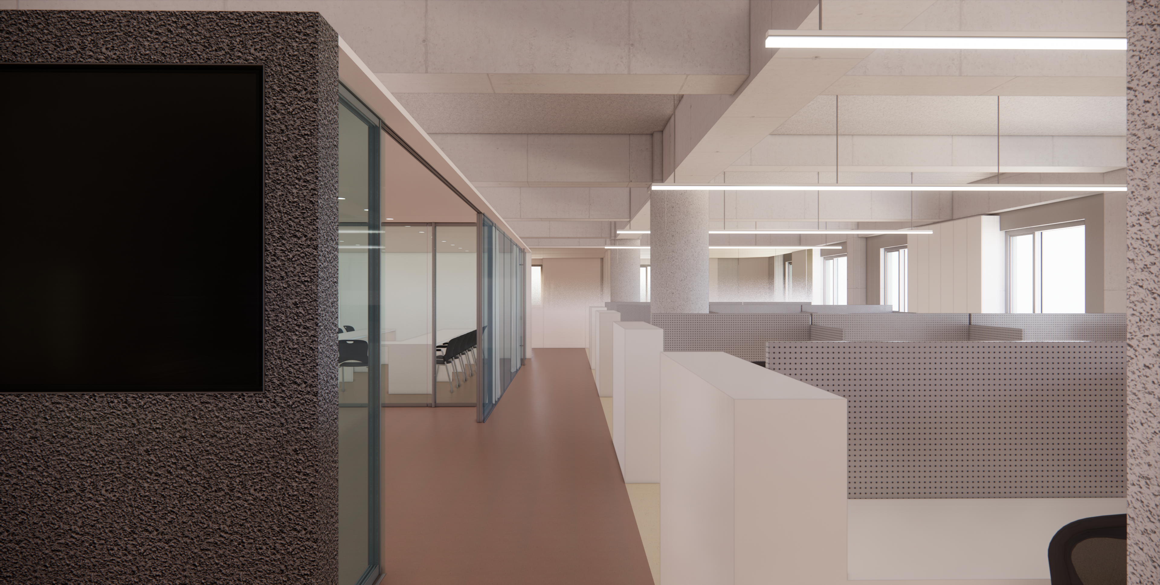 : 업무공간의 가운데 위치한 Temporal Space - 회의실, 간이 미팅공간, OA공간