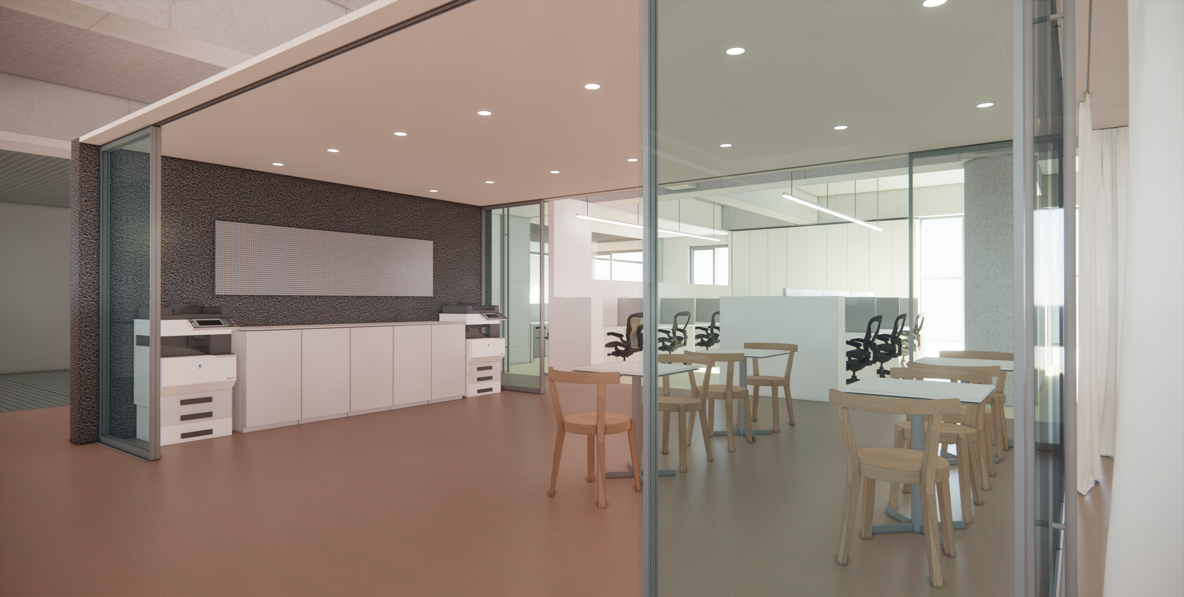 : 회의공간과 함께 직원 업무 공유공간 설정