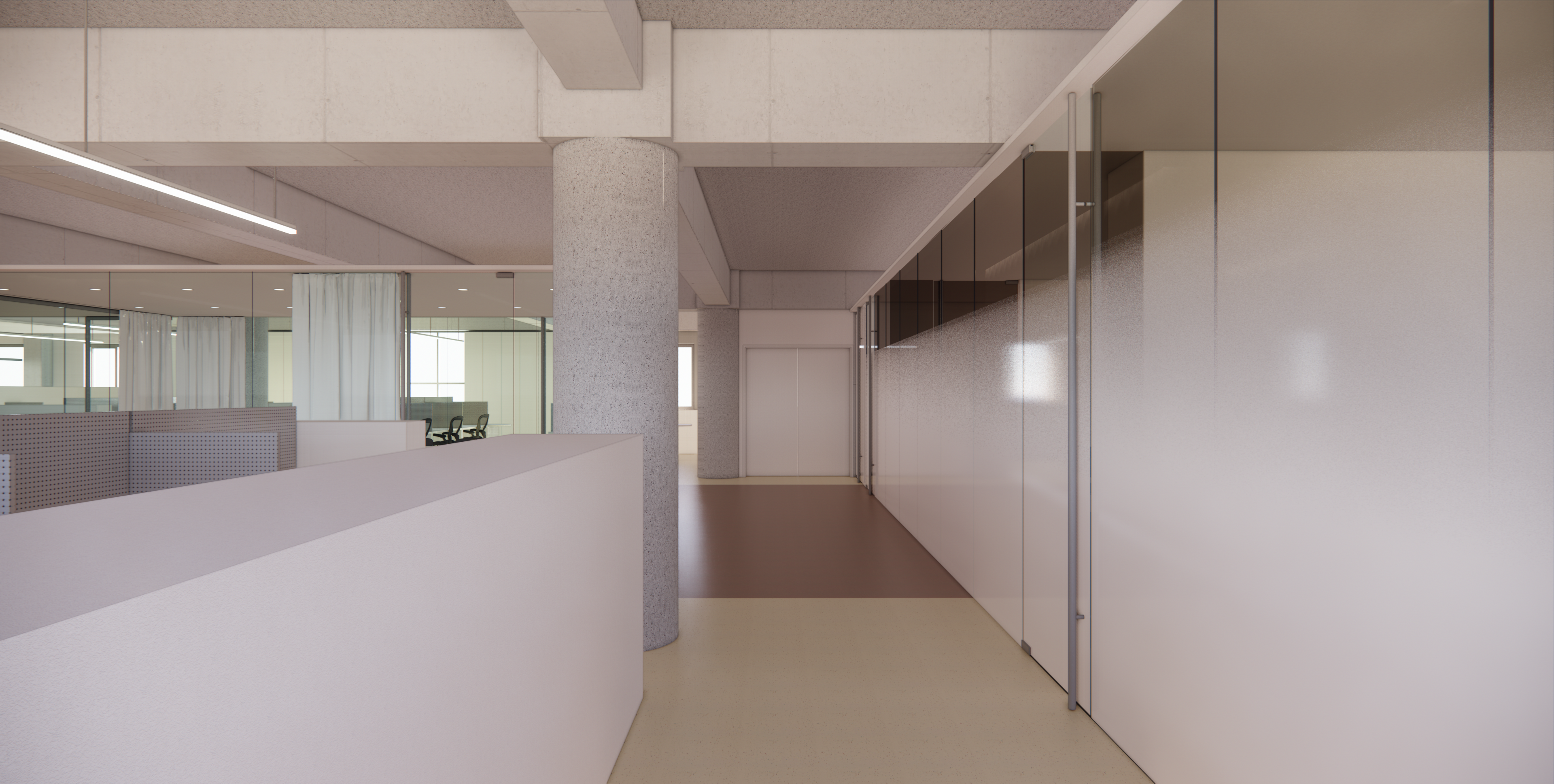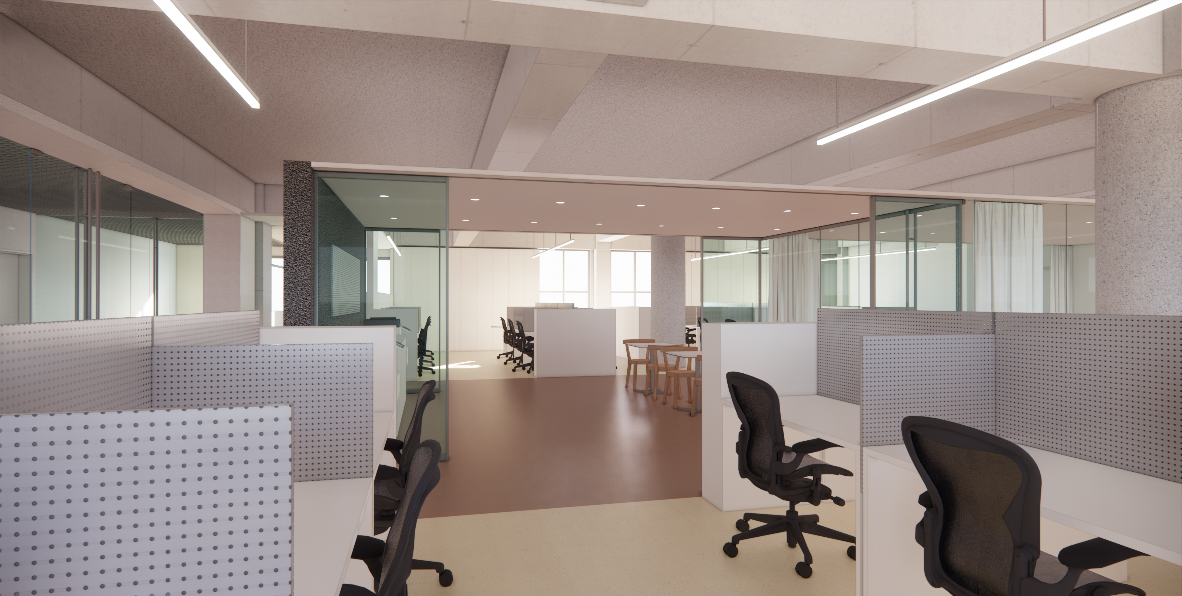 : 업무공간의 가운데 위치한 Temporal Space - 회의실, 간이 미팅공간, OA공간