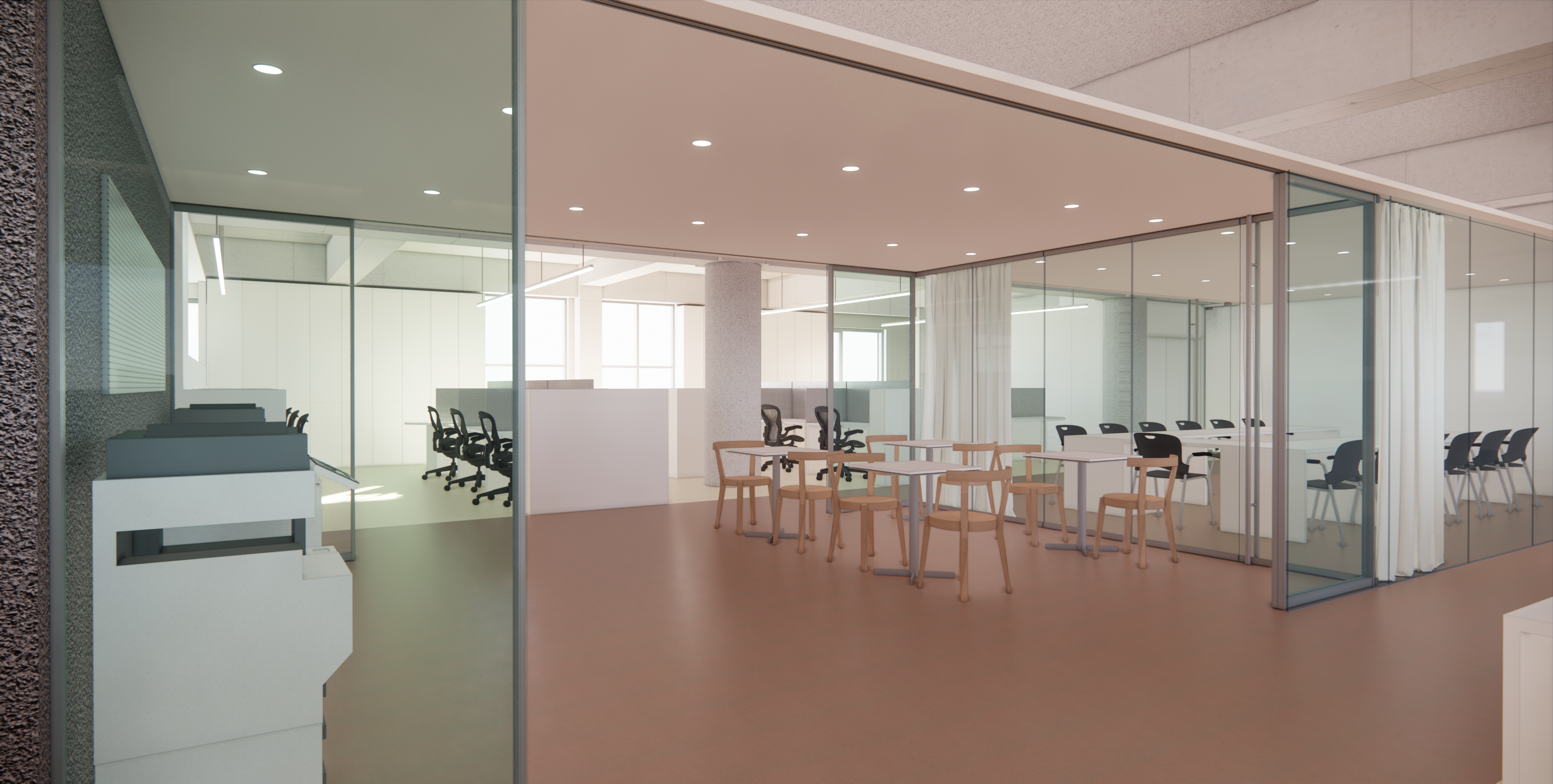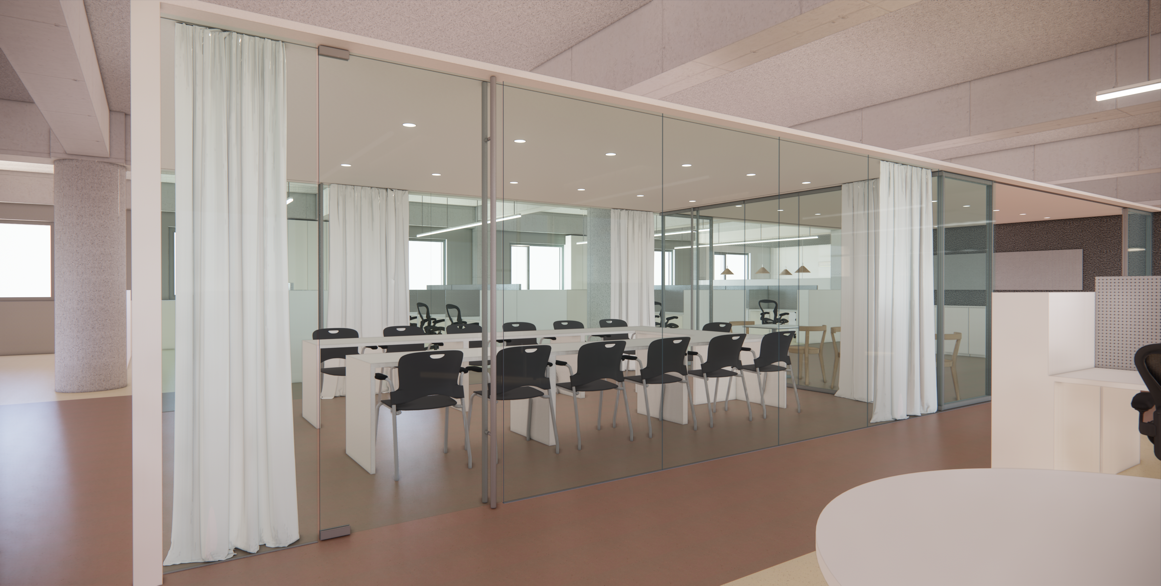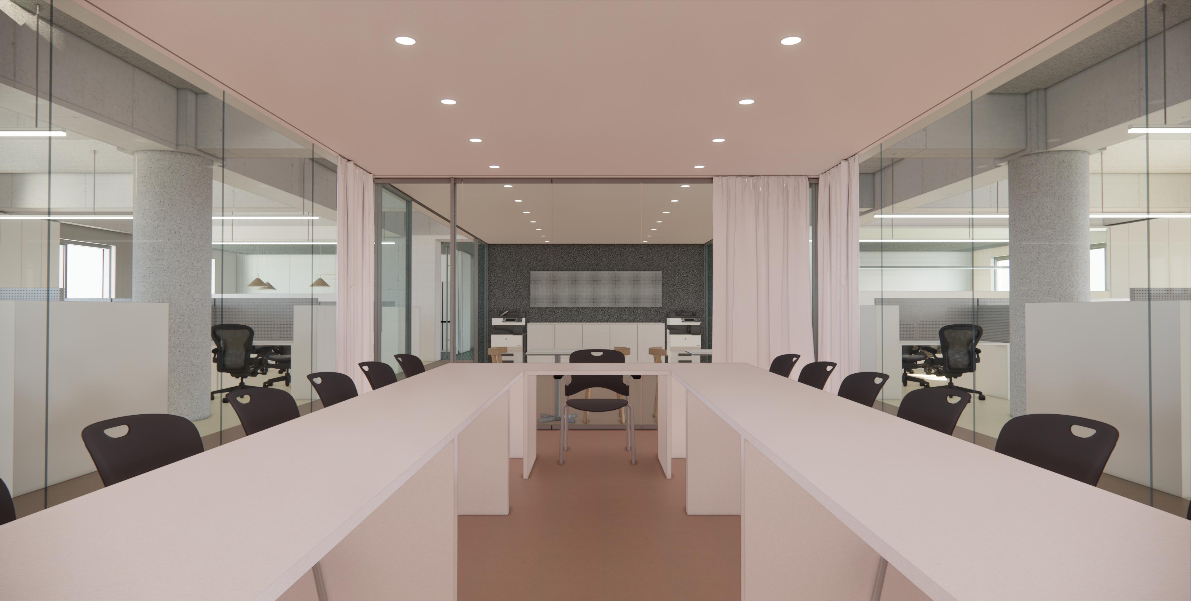 : 회의공간과 함께 직원 업무 공유공간 설정