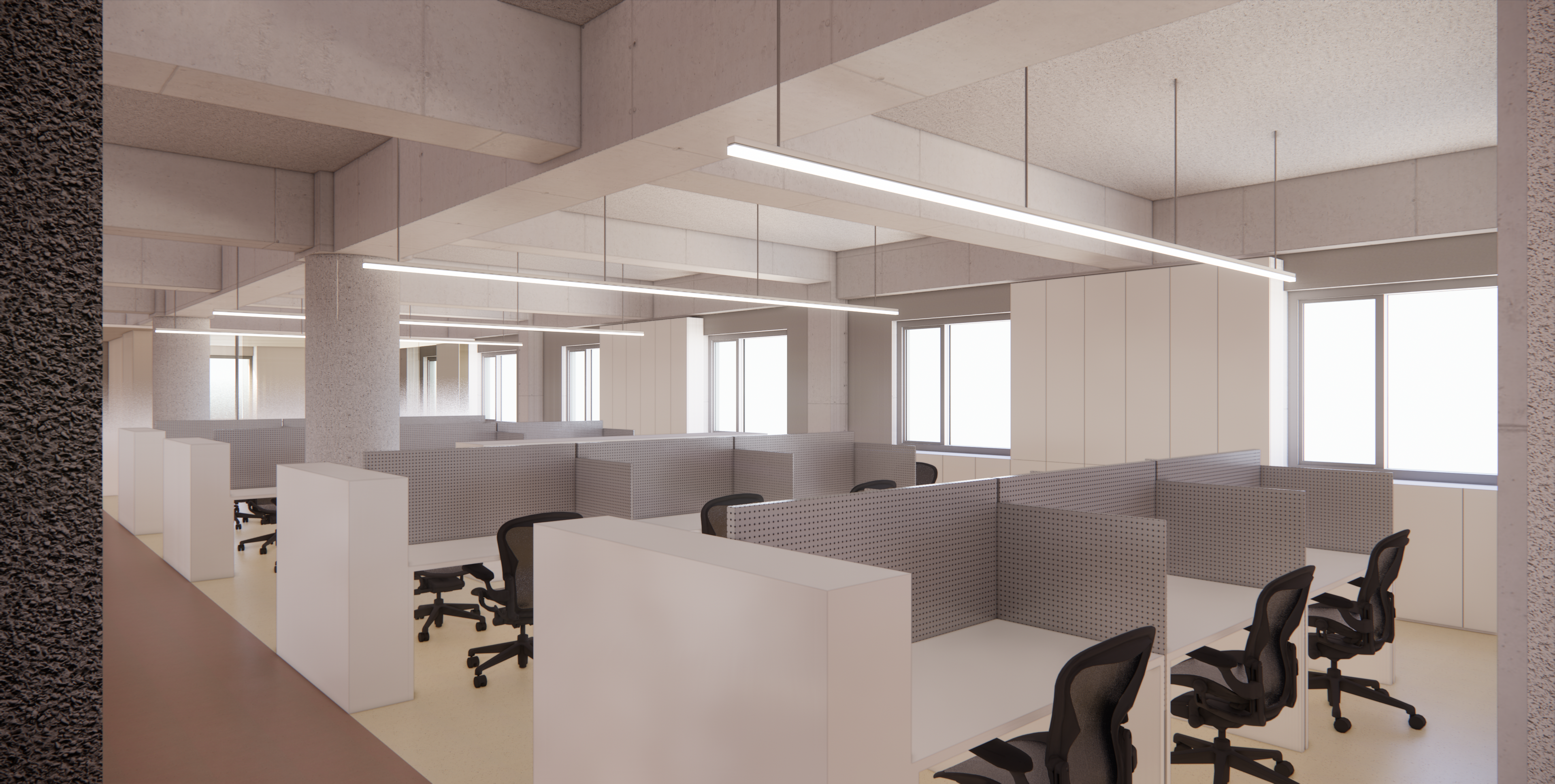 : 가장 쾌적한 창가공간에 직원 업무공간 배치