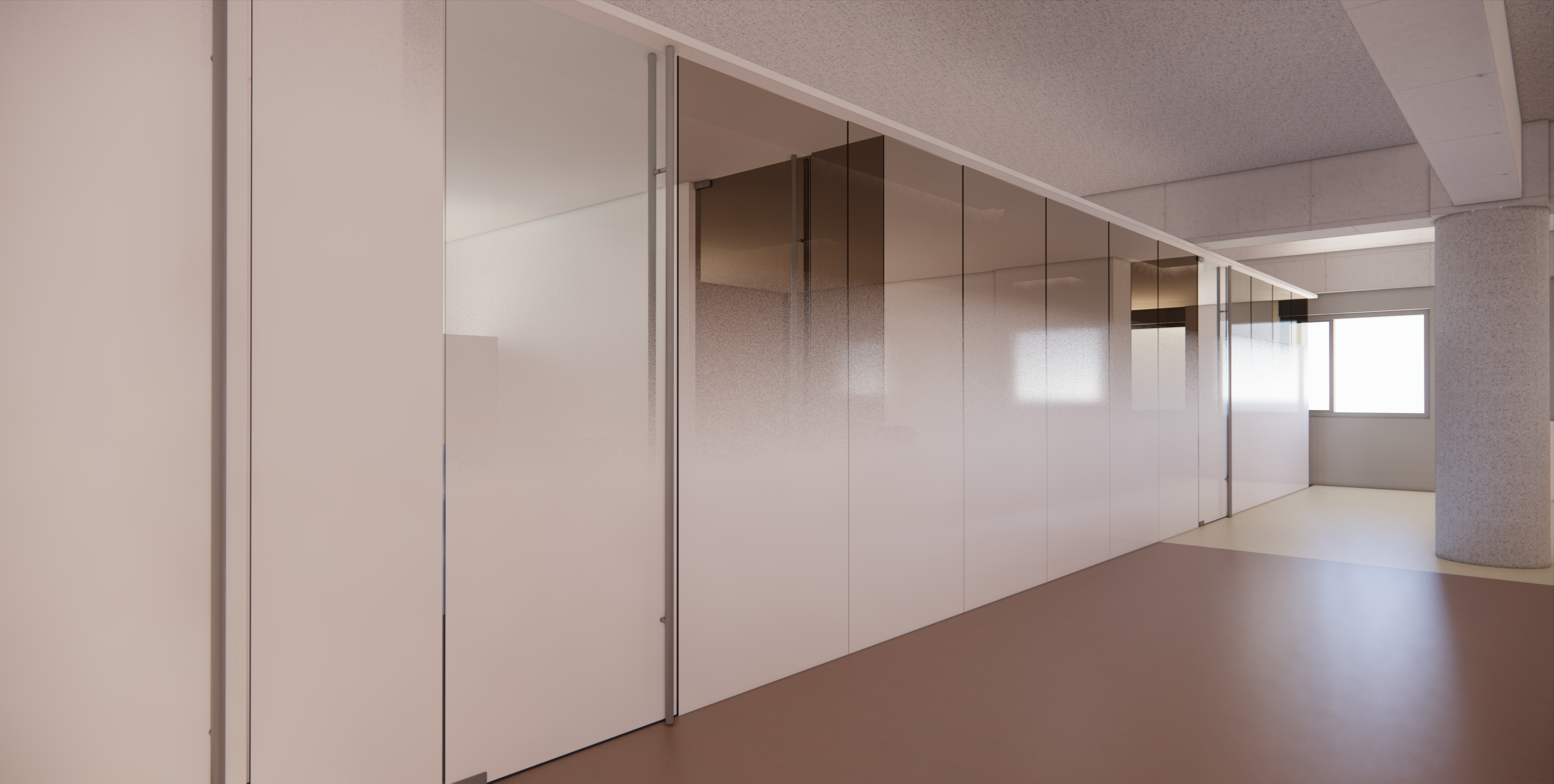 창이 있는 시설 공간의 2개 면은 회의실, 공용공간, 임원공간으로 사용되고 있었고, 직원들의 주 업무공간은 무창공간이었습니다.