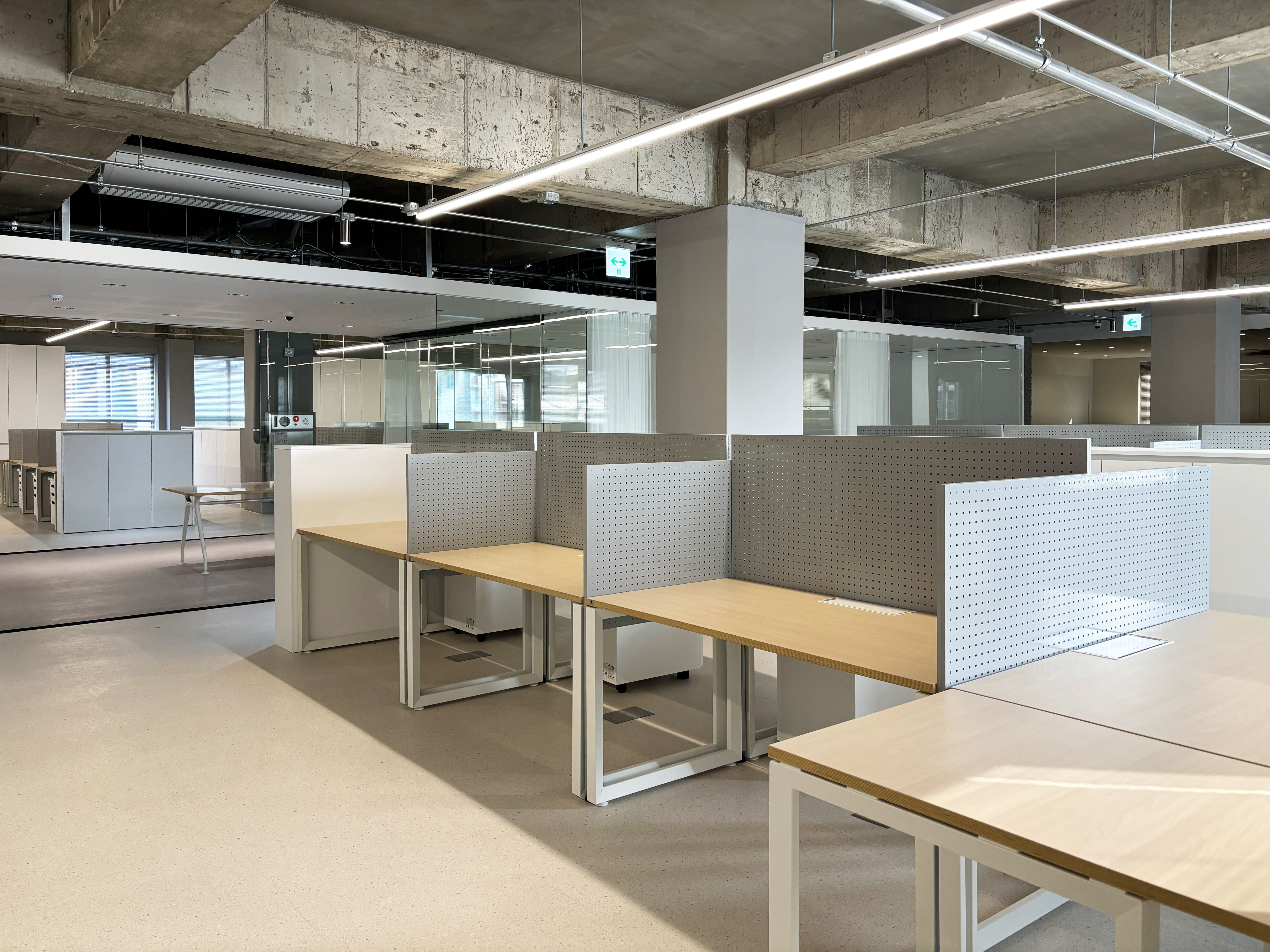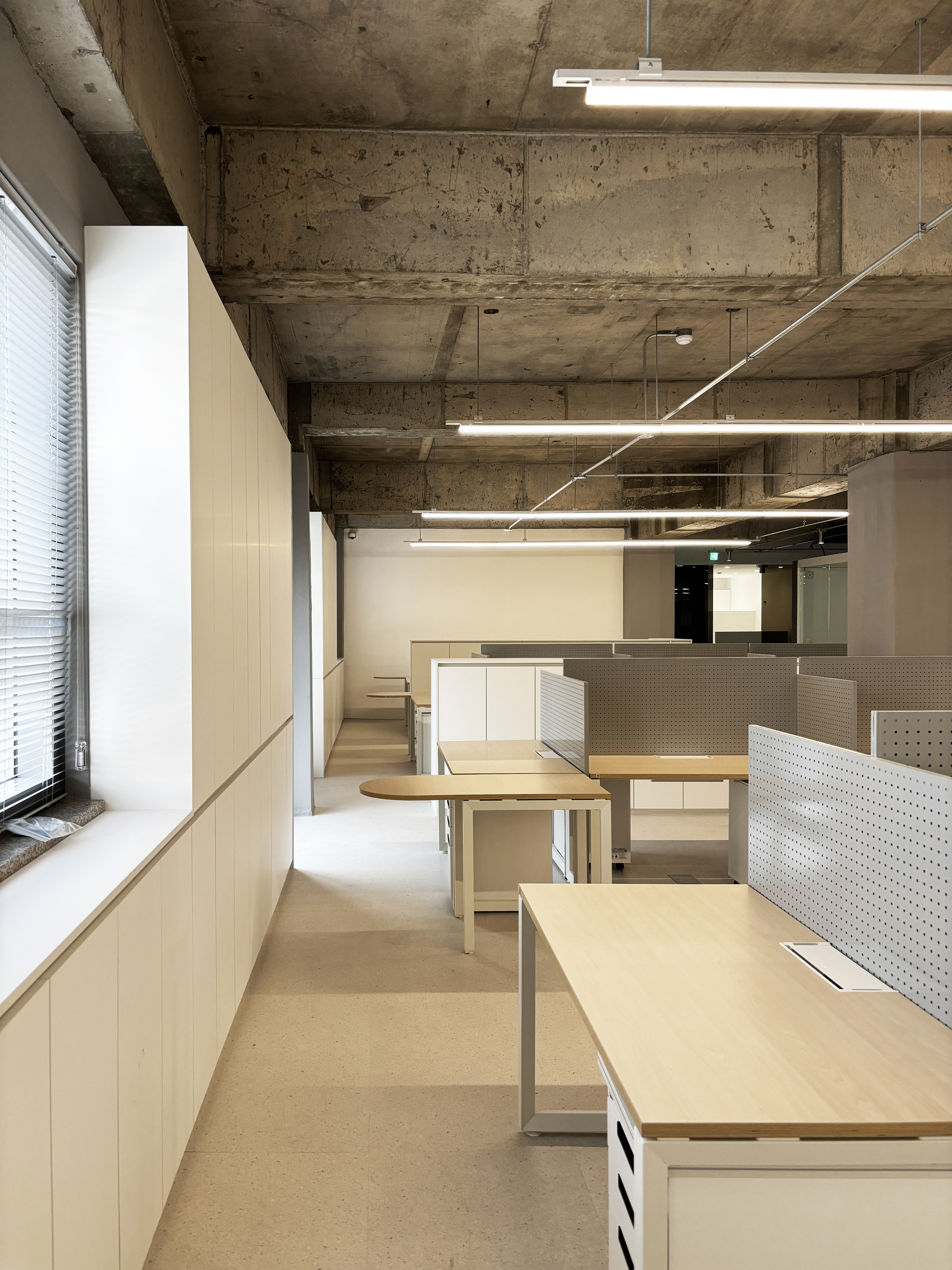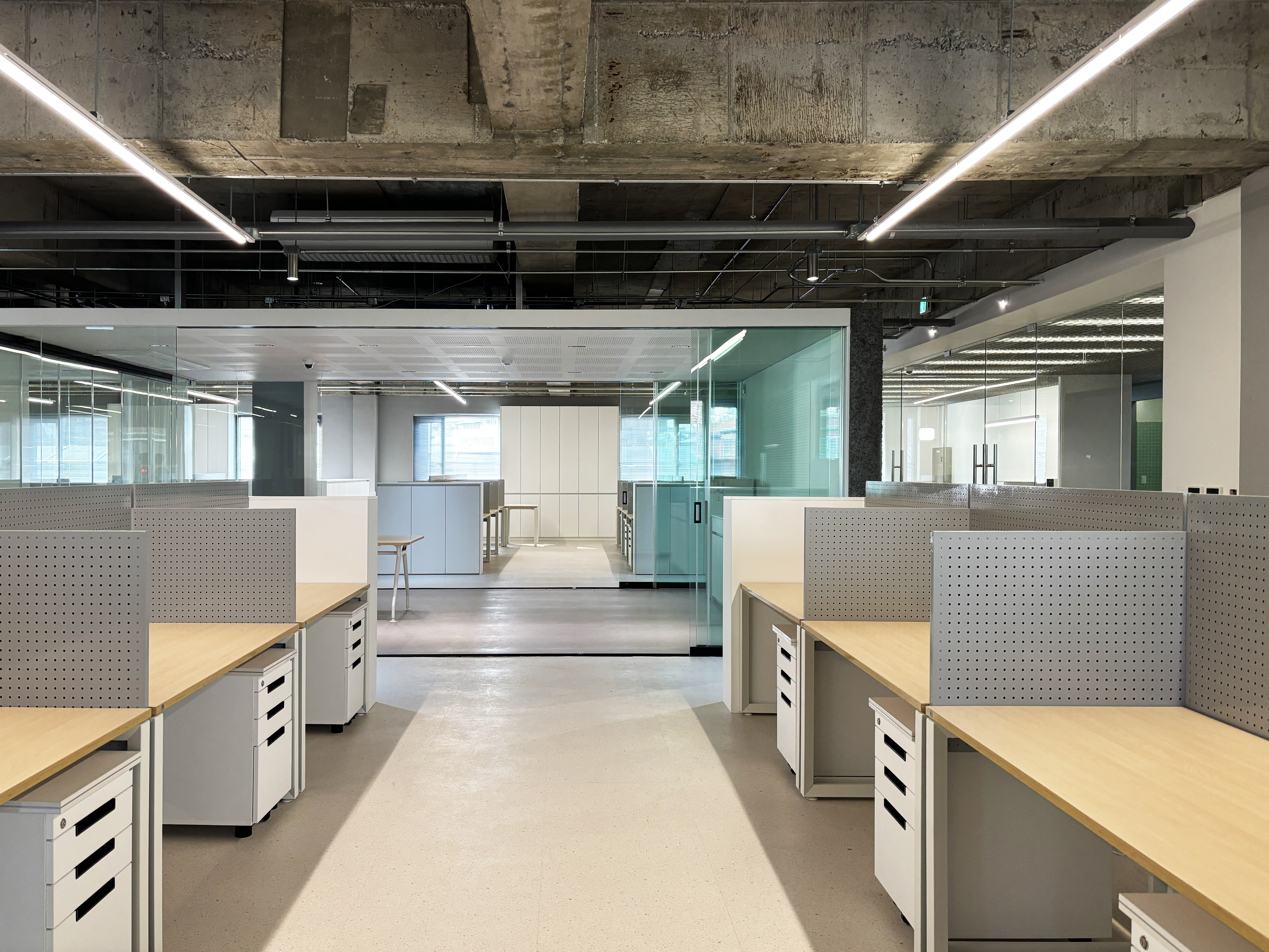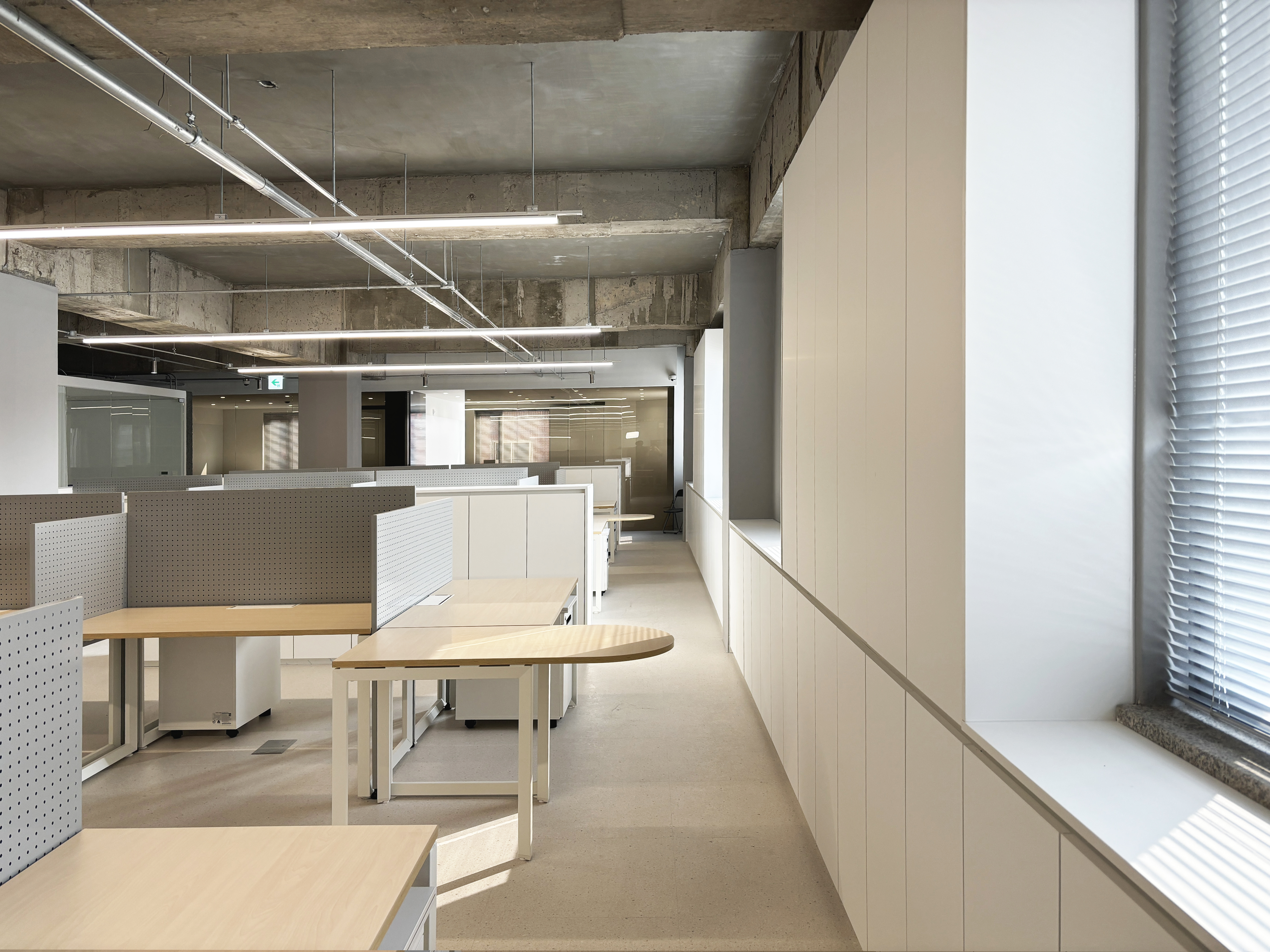 주 업무공간은 노출천장으로 시원한 공간감을 연출했고,
