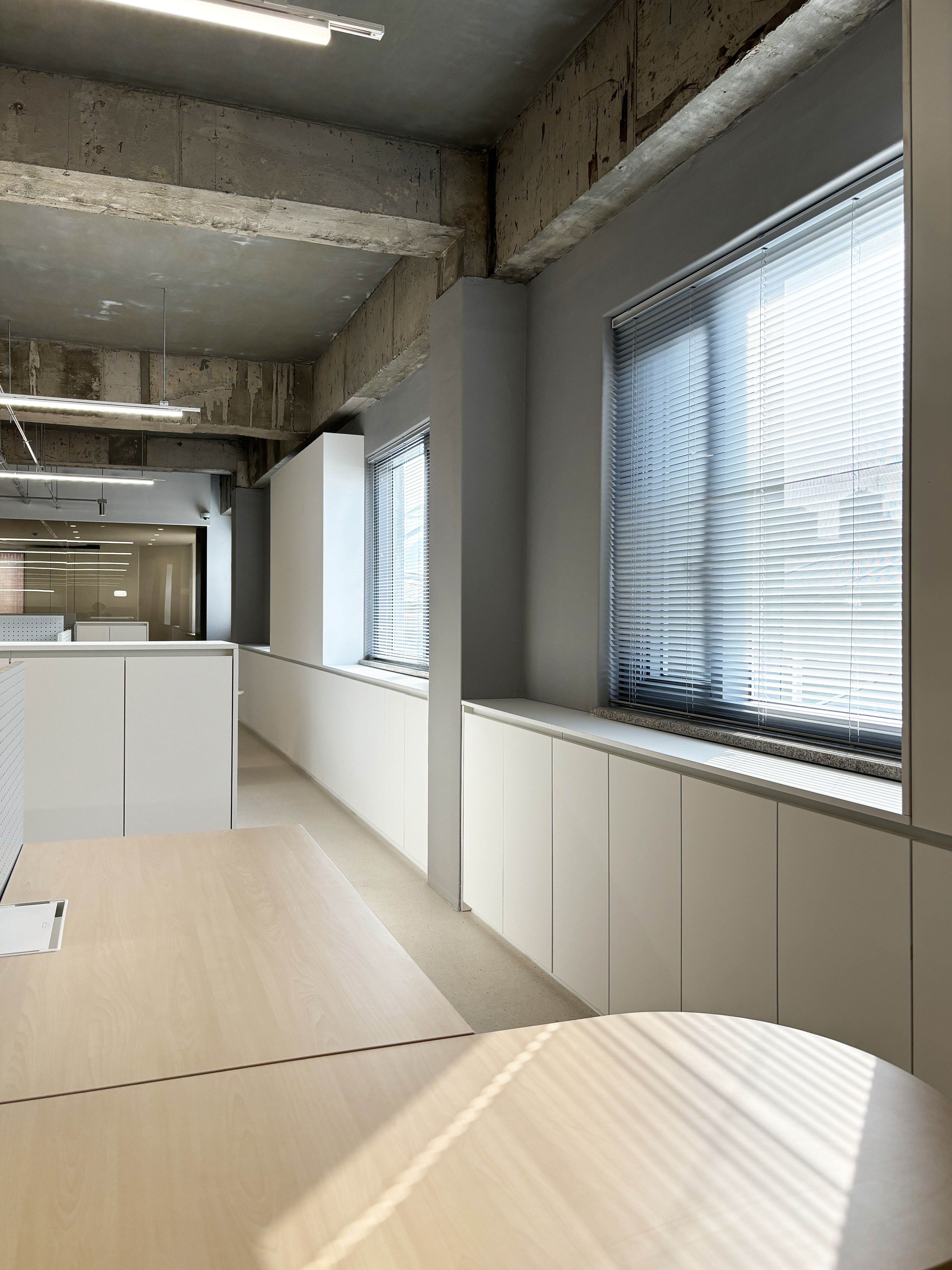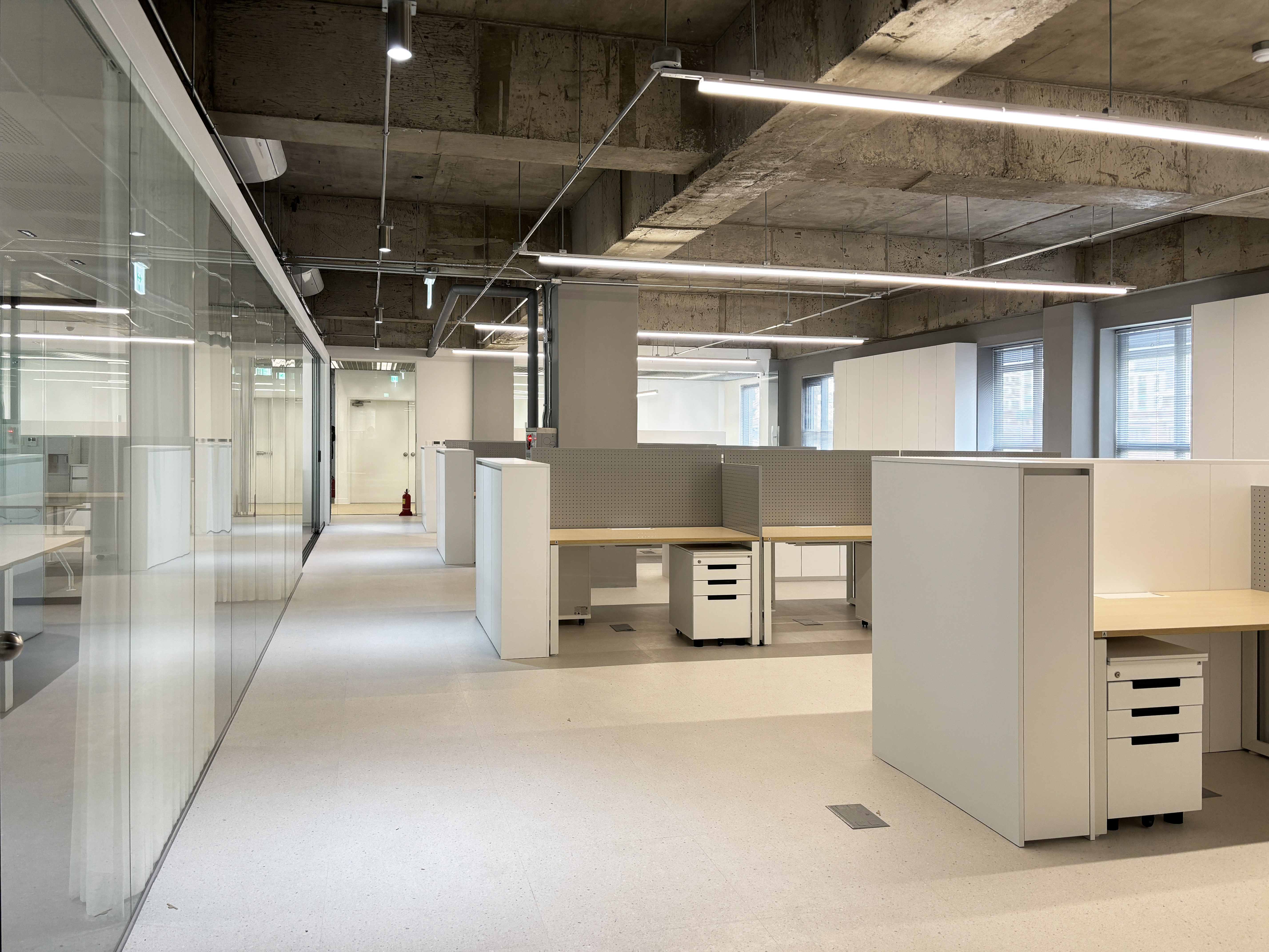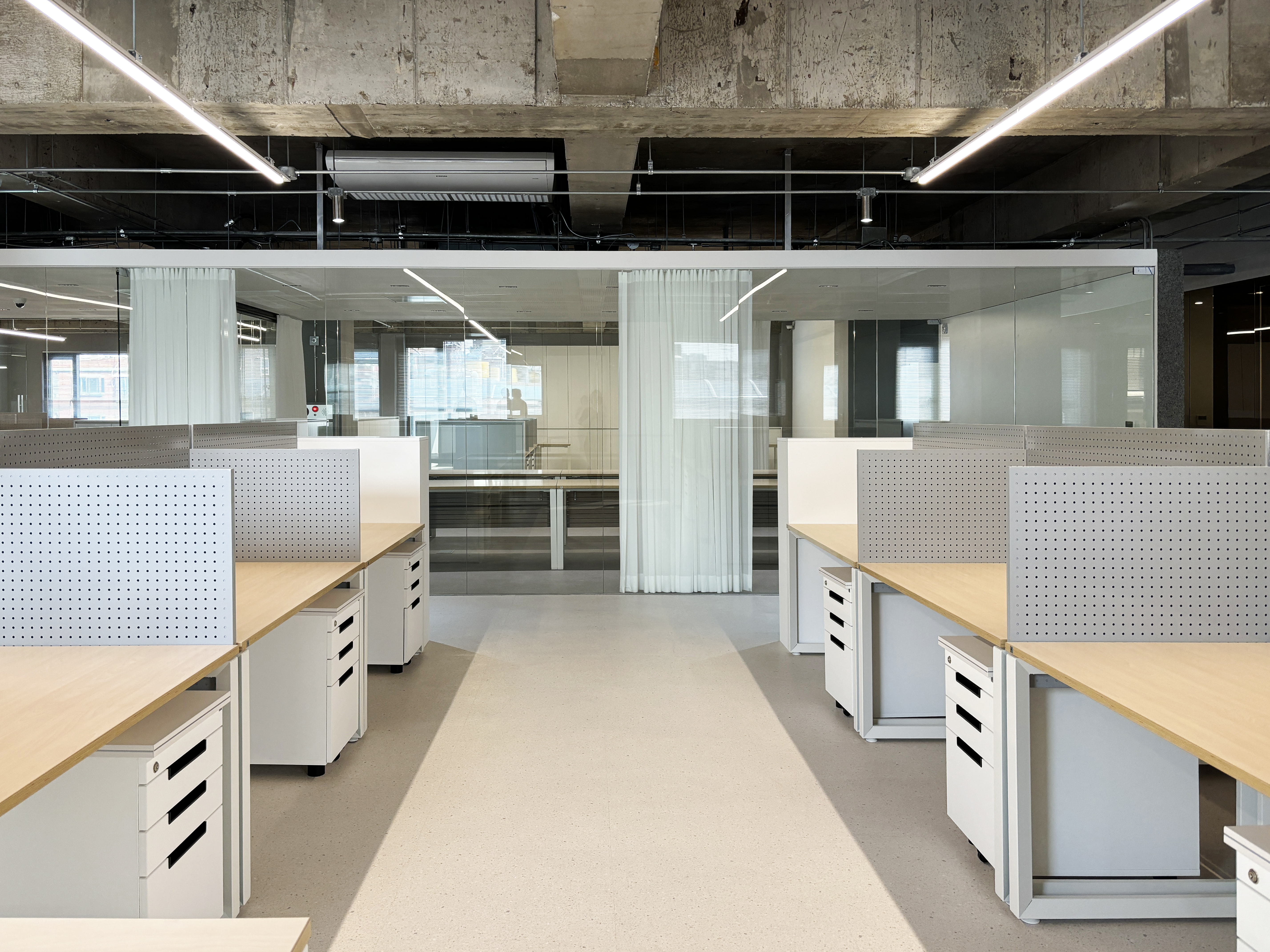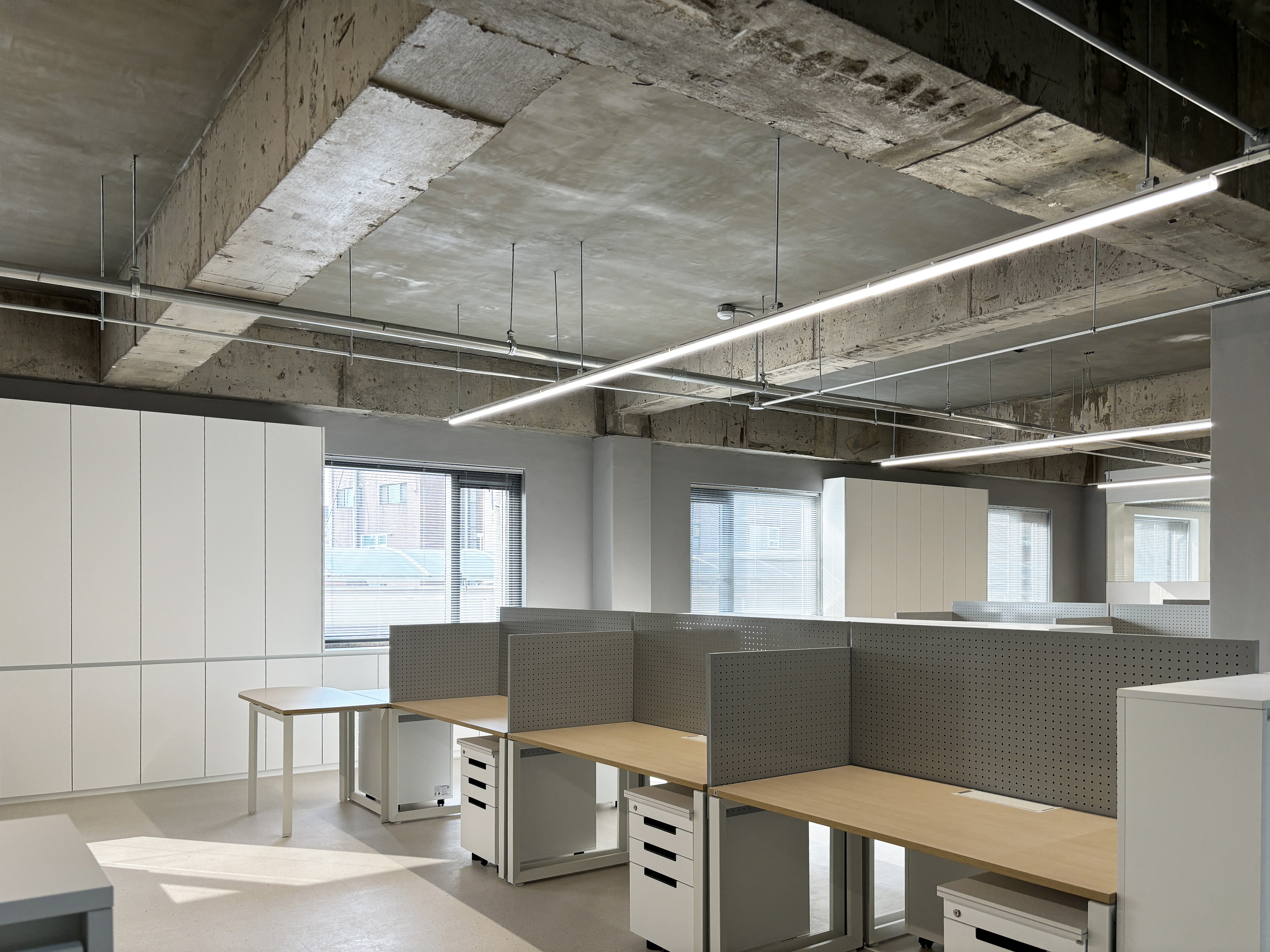 주 업무공간은 노출천장으로 시원한 공간감을 연출했고,
