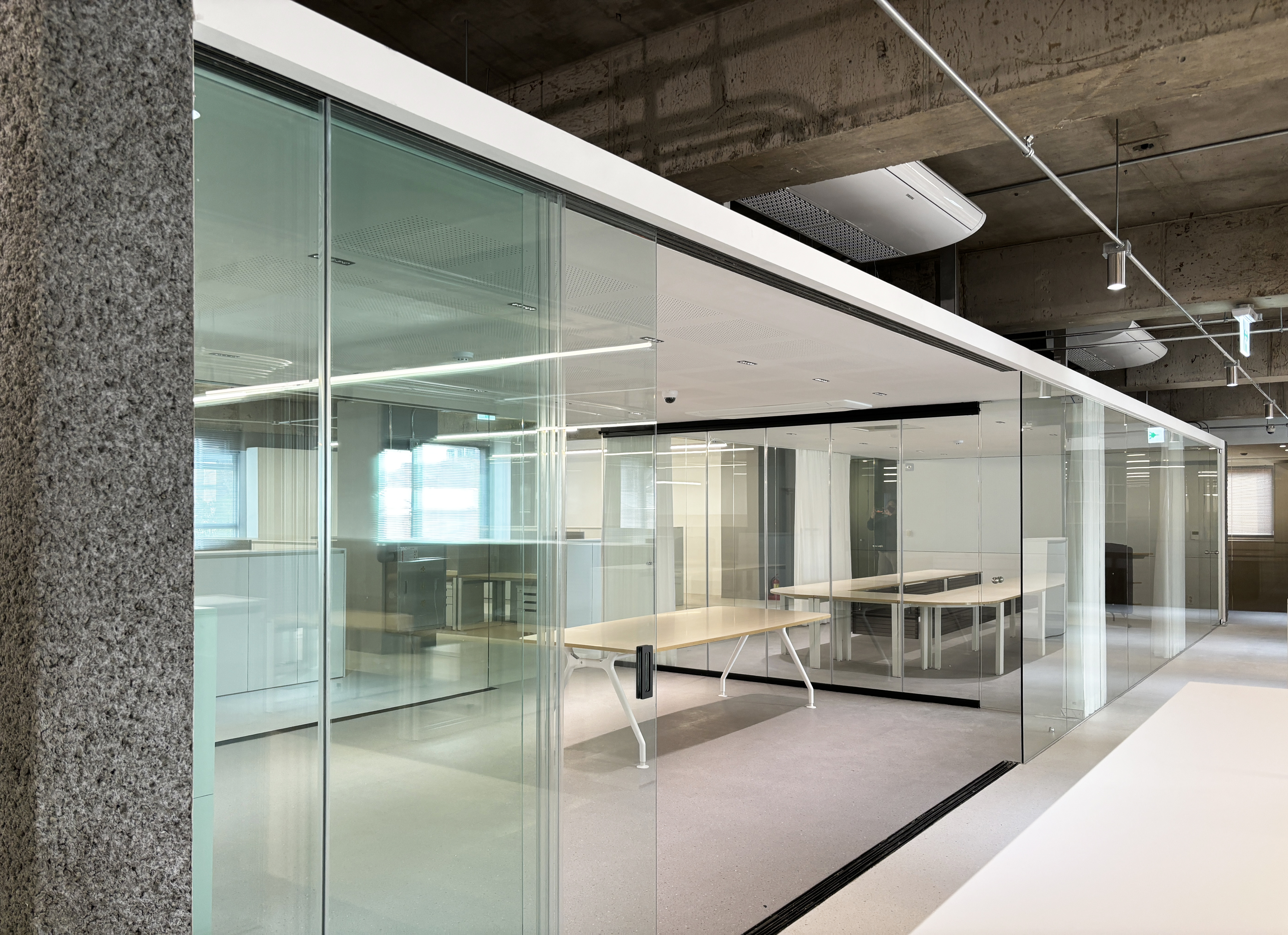 임원실과 회의실 등 구분되는 공간에만 천장을 만들었다.