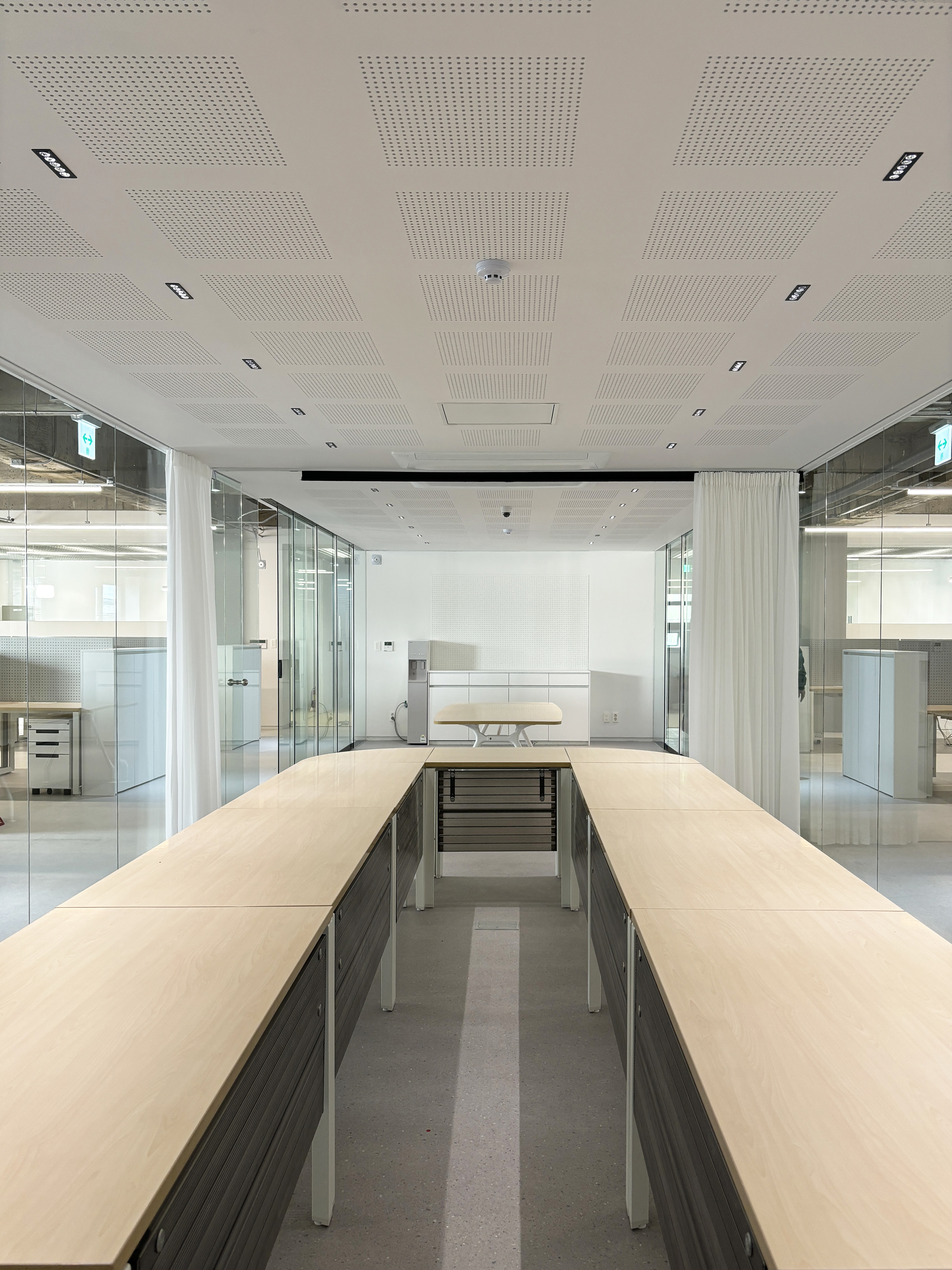 공유 시설을 모두가 이용하기 편리하도록 하며, 노출천장의 복잡한 설비를 숨겨주는 역할도 한다.